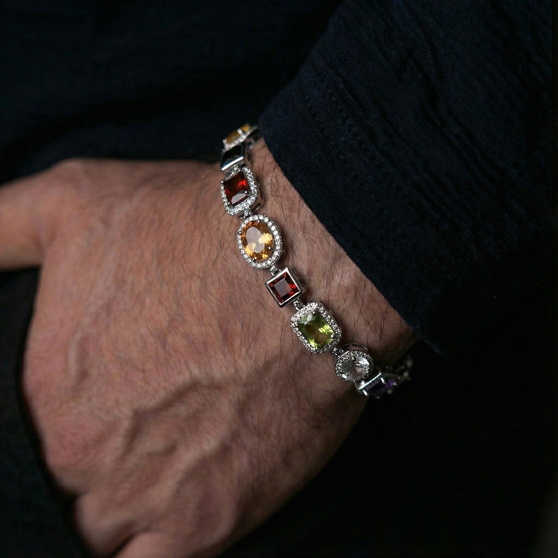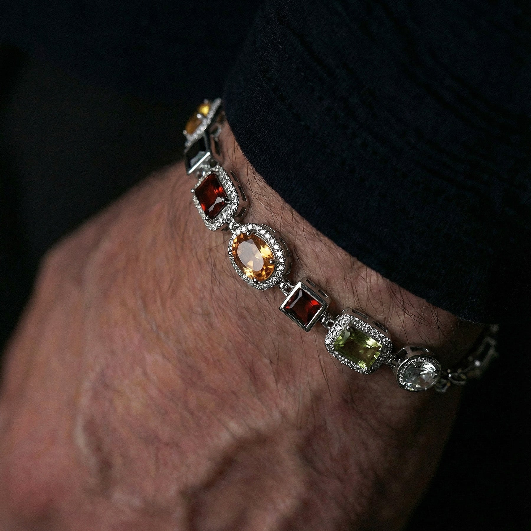 Das Damo Pastel Armband vereint zeitlose Eleganz mit modernen Farbakzenten. Jede einzelne Stein-Fassung bringt ihre eigene Farbe zum Leuchten – von zartem Rosa über kräftiges Blau bis hin zu warmem Gelb und Grün. Ein hochwertiges Statement-Piece, das jedes Outfit sofort aufwertet und perfekt für besondere Anlässe oder den täglichen Glamour ist.