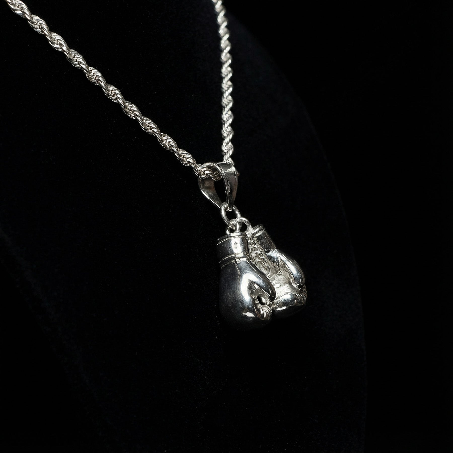 1× Boxhandschuh Anhänger, 1× Seilkette, 1× Schmuckbeutel, 1× Putztuch