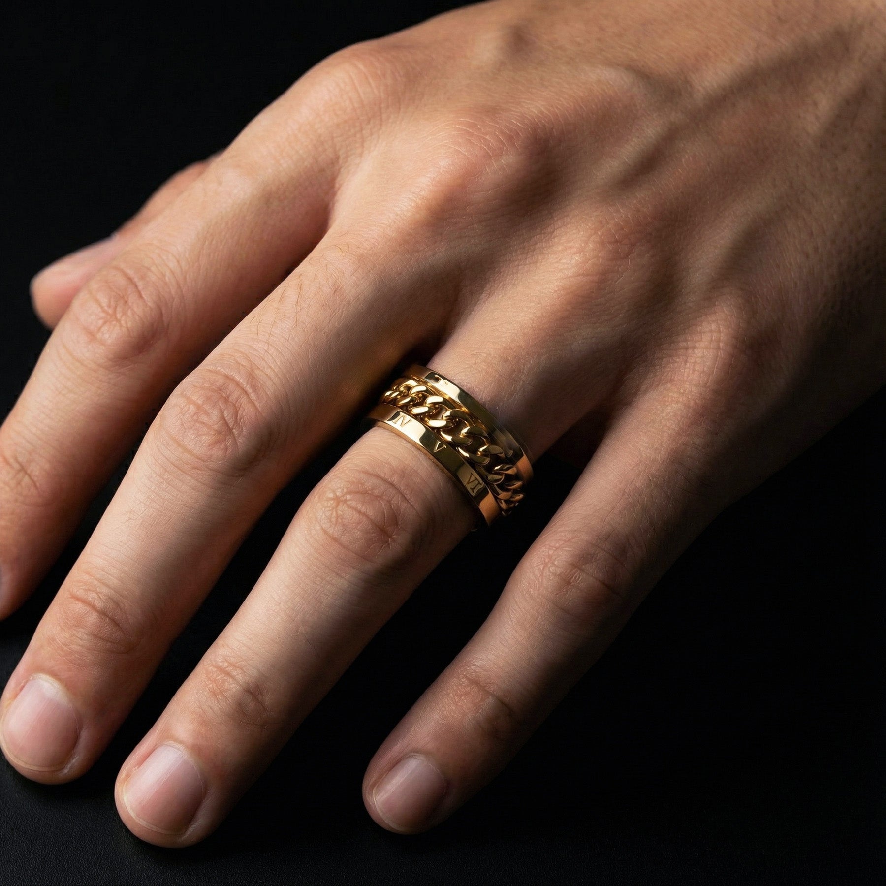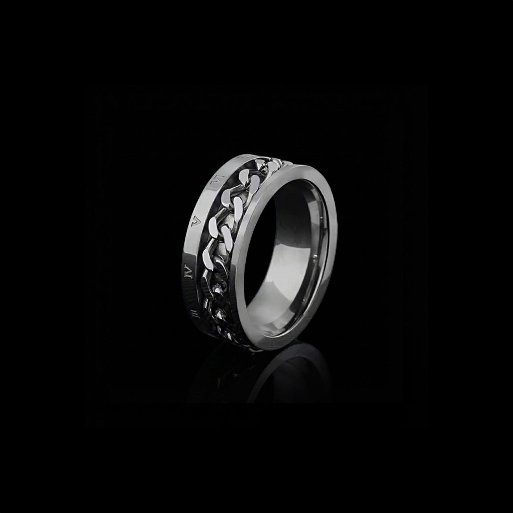 Der Roma Spin Ring verbindet ein klassisches Design mit einem modernen Twist-Effekt. Die fein gravierten römischen Zahlen verleihen dem Ring eine edle, zeitlose Ausstrahlung – perfekt für alle, die Stil lieben, ohne laut zu sein.