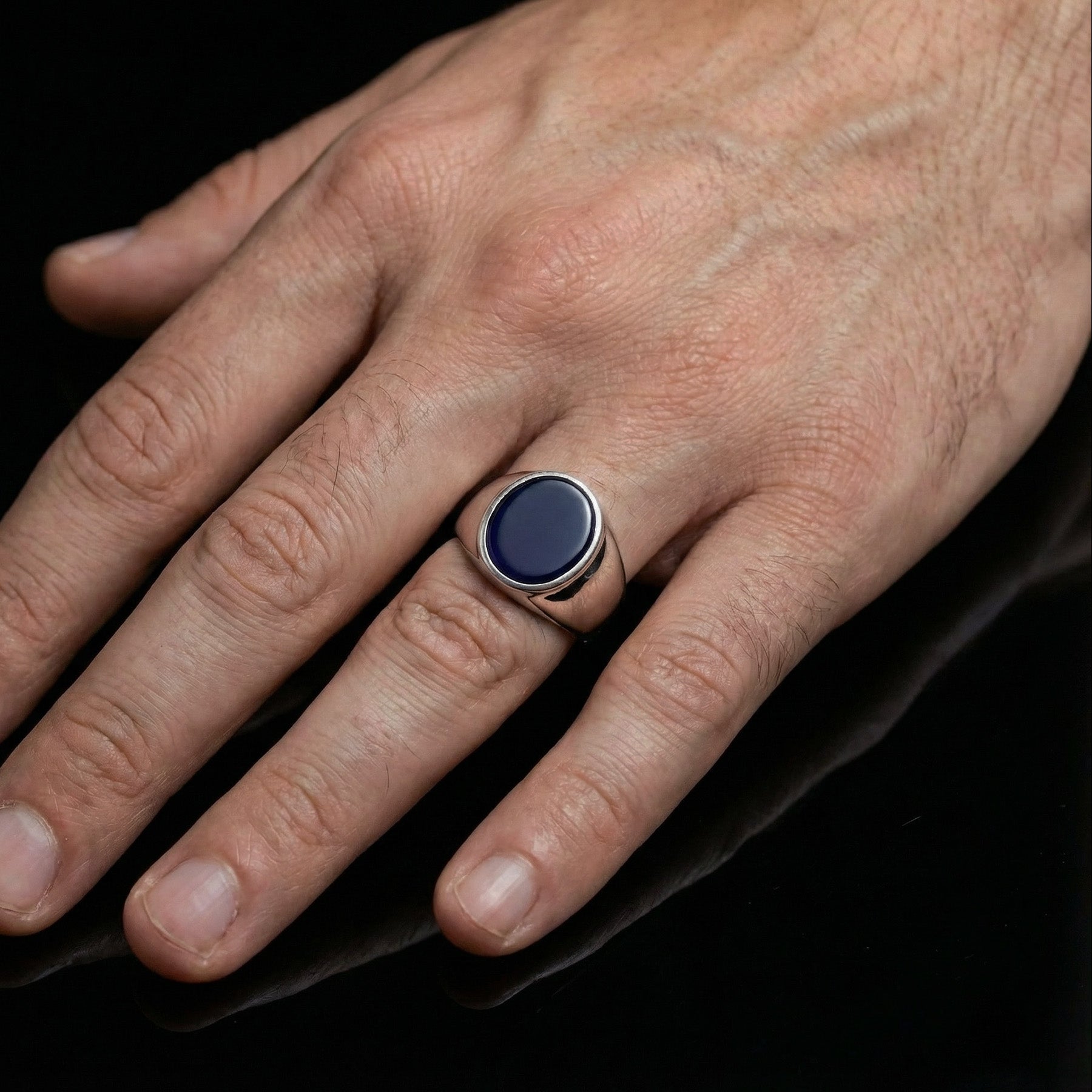Der Rov Ring kombiniert minimalistischen Style mit markanter Präsenz. Der glatte, schwarze Stein im polierten Silber- oder Goldfinish verleiht dem Ring eine moderne, edle Ausstrahlung – ideal für alle, die schlichte Eleganz und urbanen Look vereinen wollen.
